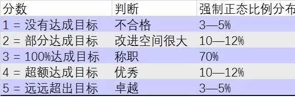 一个公司的绩效评估的前提就是定义好1~5分的标准,通常规则如下:
